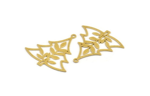 Brass Tree Charm, 6 Raw Brass Tree Charms With 1 Loop, Pendant, Findings (36x34x0.60mm) A5413