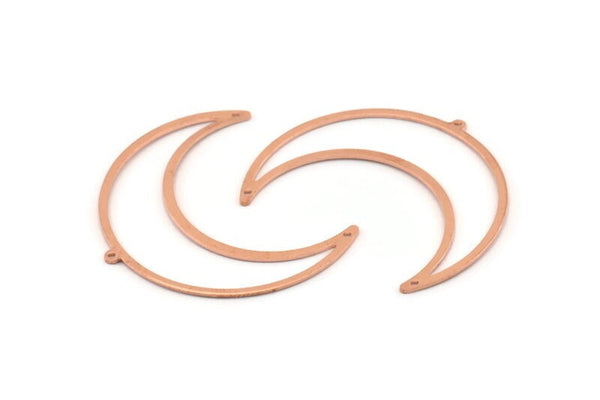 Copper Moon Charm, 4 Raw Copper Crescent Moon Charms With 1 Loop And 2 Holes (50x15x1mm) M565