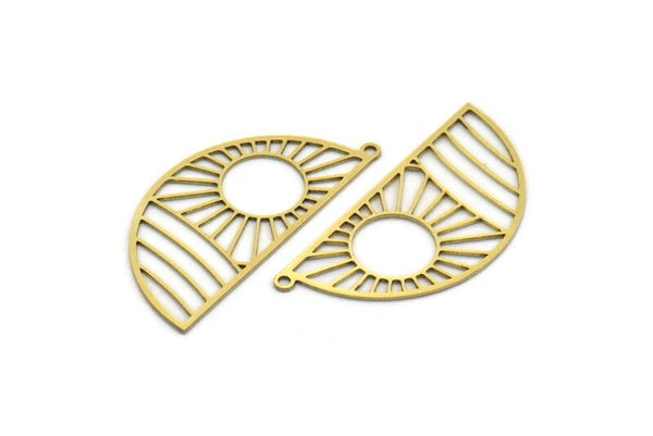 Semi Circle Charm, 4 Raw Brass Sun Rising Charms With 1 Loop, Charms, Findings (41x19x0.60mm) A6449
