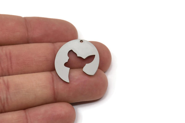 Steel Oval Charm, Stainless Steel Dog Patterned Oval Shaped Charms With 1 Hole, Animal Jewelry, Chihuahua Charms (30x23x0.80mm) SMP2580