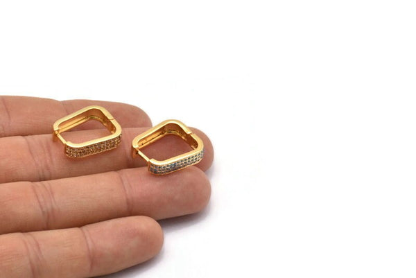 Raw Brass Lever Back Hoop Zircon Earrings