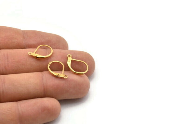 Leverback Earring Finding, 50 Raw Brass Plain Leverback Earring Findings (16x10mm) Bs 1102--a0896
