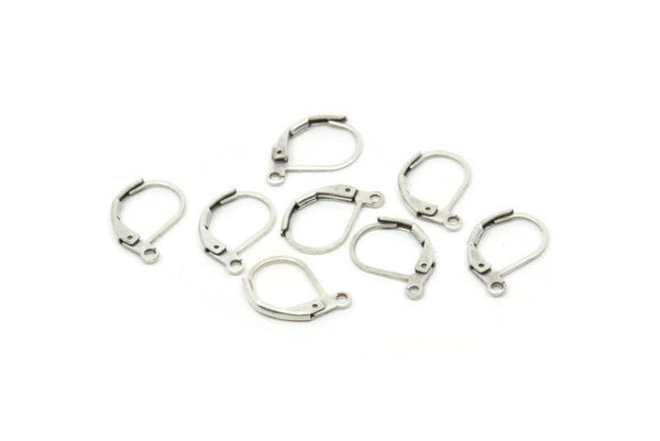 Antique Silver Plated Brass Black Plain Leverback Earring Findings