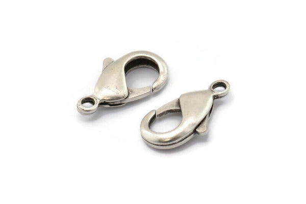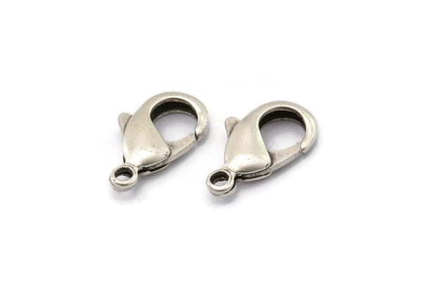 Silver Parrot Clasp, 4 Antique Silver Plated Brass Lobster Claw Clasps (23x13mm) Bs-1182--n0589