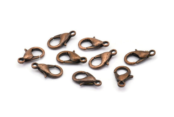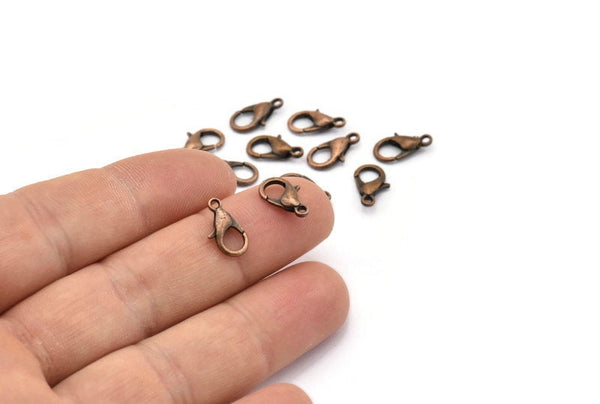 Vintage Lobster Clasp, 25 Antique Copper Lobster Claw Clasps (12x6mm) P502 ( A0401 )