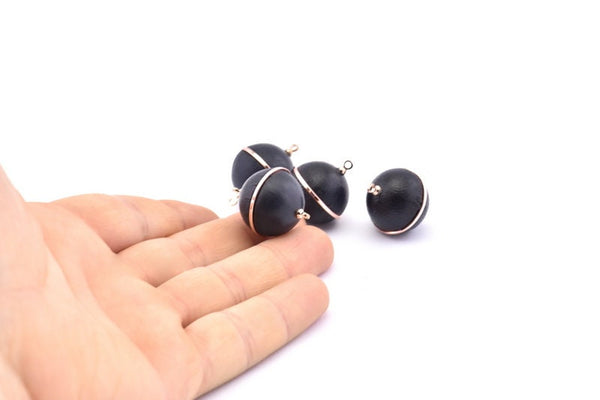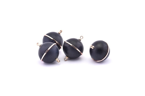 Lamb Leather Covered Brass Ball Connectors With 2 Loops