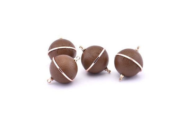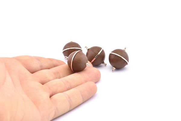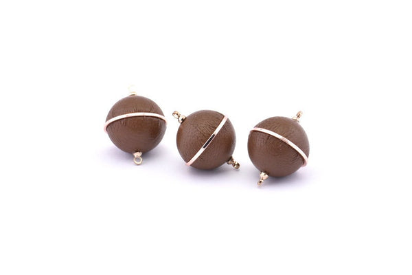 Brass Ball Charm, 2 Lamb Leather Covered Brass Ball Connectors With 2 Loops, Earrings, Pendants, Findings (26x20mm) B25