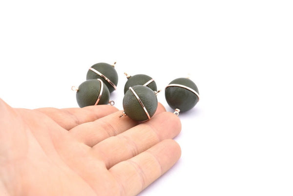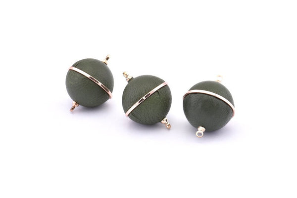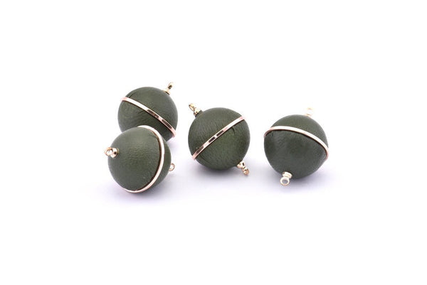 Brass Ball Charm, 2 Lamb Leather Covered Brass Ball Connectors With 2 Loops, Earrings, Pendants, Findings (26x20mm) B28