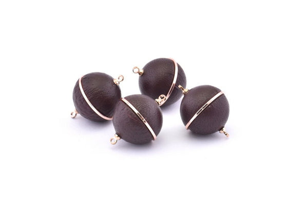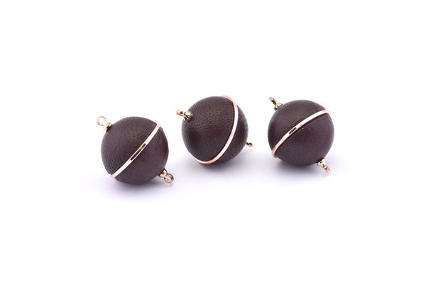 Lamb Leather Covered Brass Ball Connectors With 2 Loops