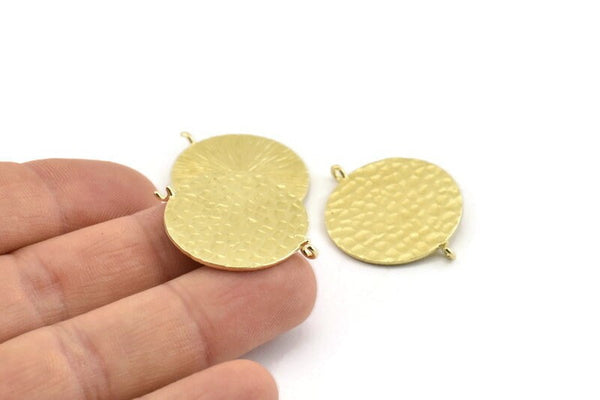 Brass Round Charm, Hammered Raw Brass Round Connectors With 2 Loops, Findings (24x1mm) N1258