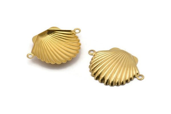 Brass Shell Charm, 24 Raw Brass Sea Shell Charm With 2 Loops, Pendants, Connectors, Findings (20x28mm) D1053