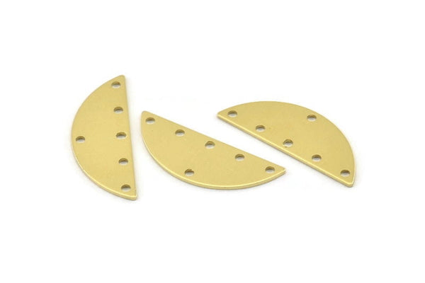 Semi Circle Charm, 12 Raw Brass Half Moon Charms With 6 Holes, Blanks, Connectors (29x11x0.80mm) M501