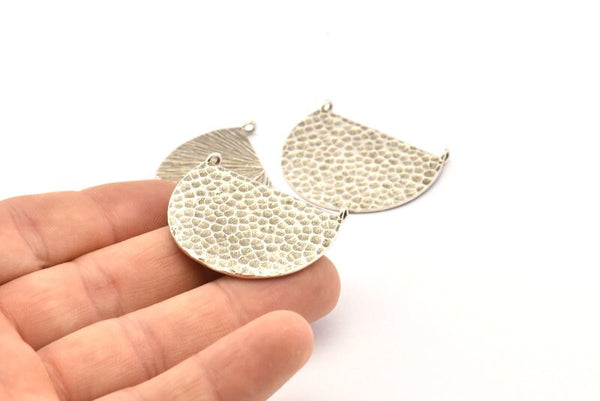 Hammered Antique Silver Plated Brass Semi Circle Charms With 2 Loops
