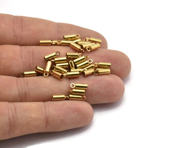 50 Raw Brass End Cap, Cord Tip Cord Ends