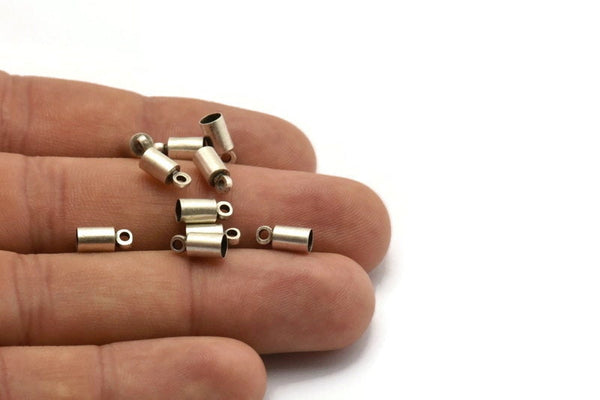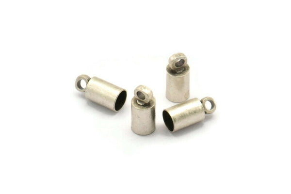 Antique Silver Barrel End, 25 Antique Silver Plated Barrel End With Loop - Leather Cord Ends (4x9mm) Bs-1645 H0169