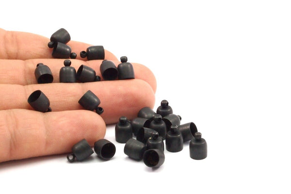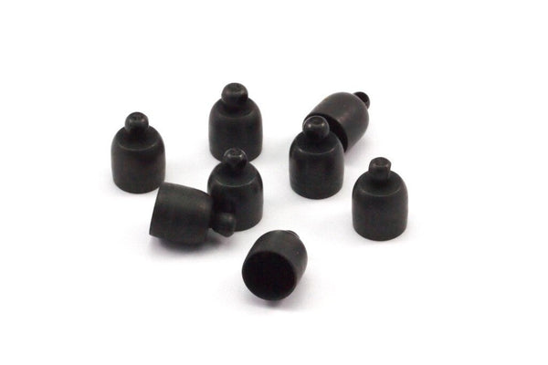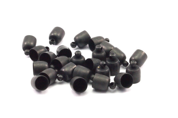Black Leather Cord End, 50 Oxidized Brass Black Barrel End With Loop - Leather Cord Ends (6.8x10) BS 1662 S500