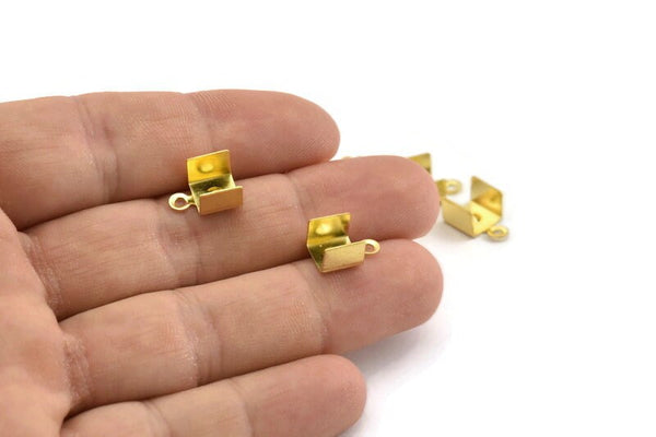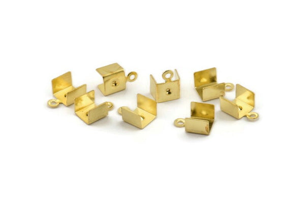 Raw Brass, Brass Cord Ends, Ribbon Crimp Ends, Crimp Connectors, Crimp Ends