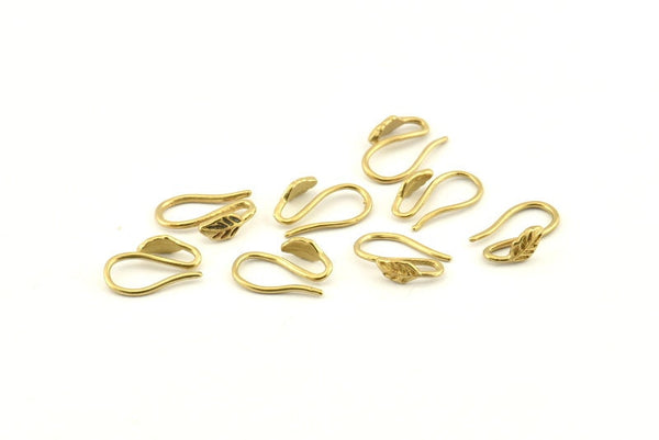 Raw Brass Leaf Earring Wires, Earring Hooks