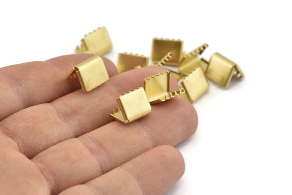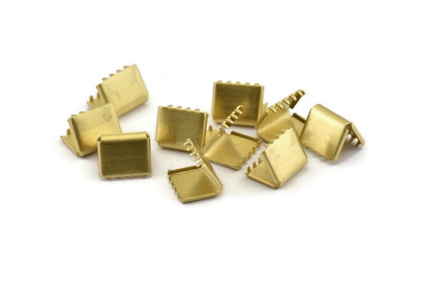 Brass Ribbon Crimp, 12 Raw Brass Ribbon Crimp Ends (11mm) D0380