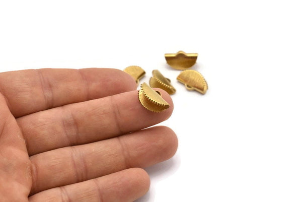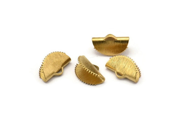Raw Brass Textured Ribbon Crimp Ends With 1 Loop