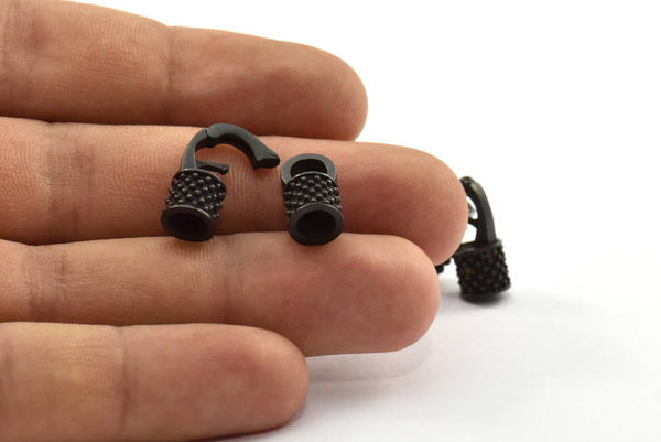 Leather Hook Caps, 2 Oxidized Brass Black Leather Cord Ends, Hook Ends for 5mm Leather Cord (17x14x8mm) N0311 S626