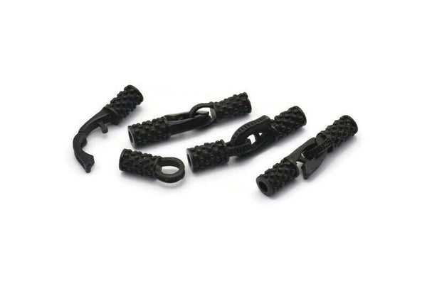 Leather Hook Caps, 4 Oxidized Black Brass Leather Cord Ends for 2mm Leather Cords, Hook Ends (15x12x4mm) N0307