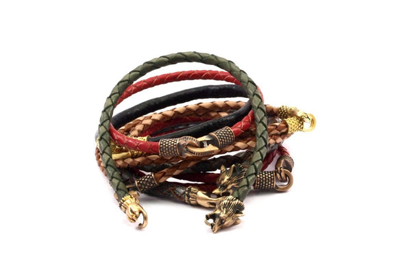 Raw Brass Leather Cord Ends for 4mm Leather Cords, Hook Ends