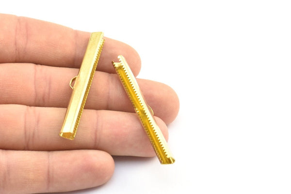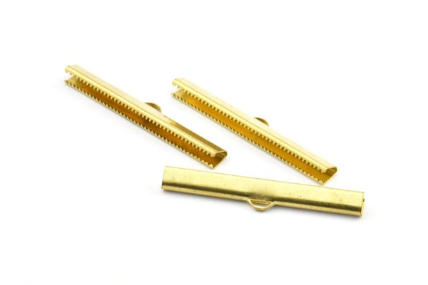 Raw Brass Ribbon Crimp Ends With Loop