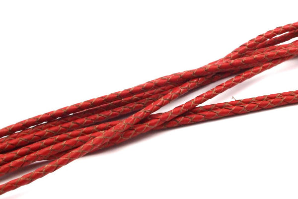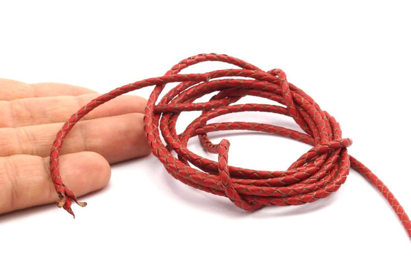 Red Braided Leather Cord, 1 Meter Leather Cord, Genuine Round Leather Cord (3mm) B3009