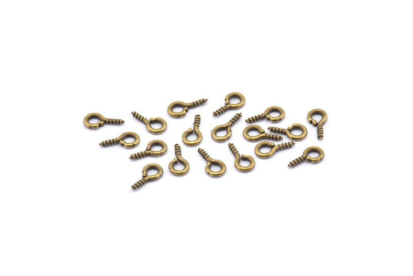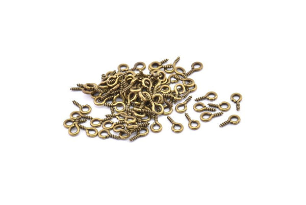 Screw Eye Pin, 100 Antique Brass Screw Hook Eye Pins (8x4mm) A1050