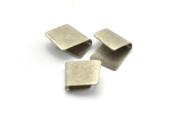 Silver Ribbon Crimp, 8 Antique Silver Plated Brass Ribbon Crimp Ends, Findings (12x15mm) D1341