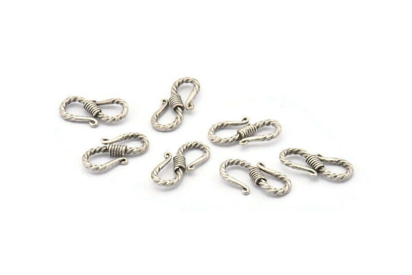 Antique Silver Plated Brass Textured Hooks With 2 Loops