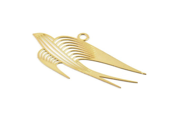 Gold Bird Charm, 4 Gold Plated Brass Bird Charms With 1 Loop, Findings (49x24x0.30mm) D1700