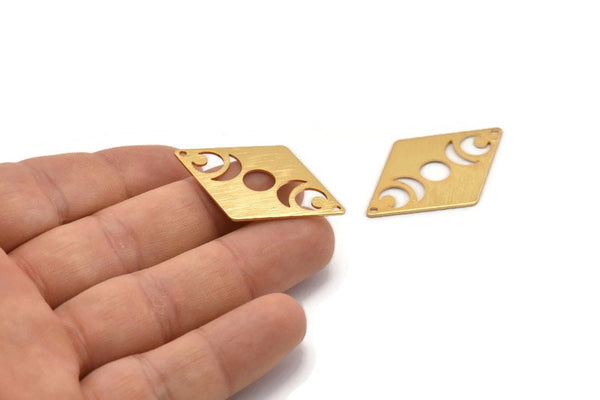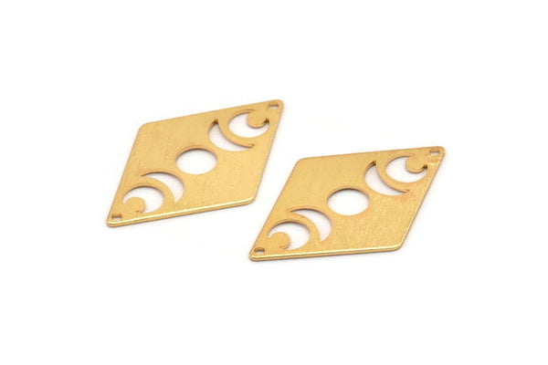 Gold Plated Brass Moon Charms With 2 Holes, Rhombus Blanks