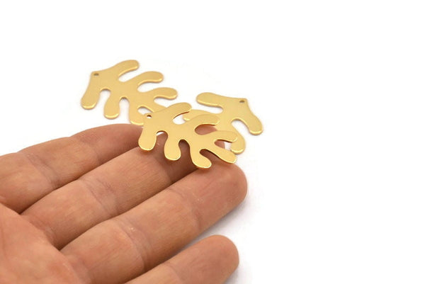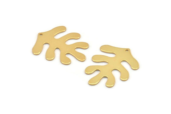 Gold Leaf Charm, 2 Gold Plated Brass Leaf Charms With 1 Hole, Findings (32x25x0.80mm) M481