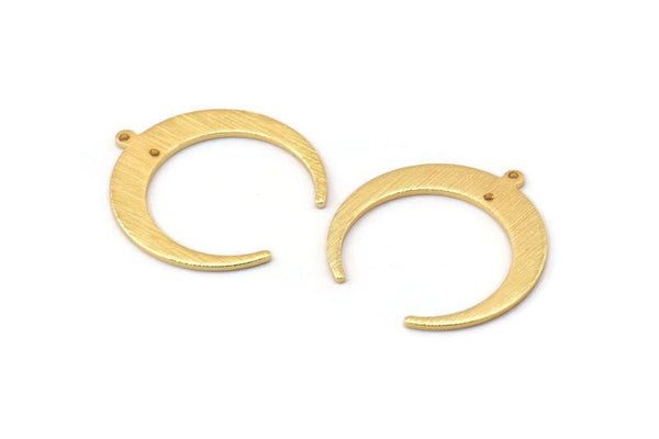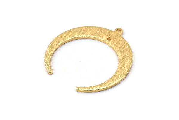 Gold Moon Charm, 2 Textured Gold Plated Brass Crescent Moon Charms With 1 Loop And 1 Hole (28x27x1mm) M02225