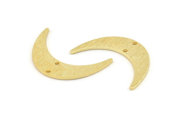 Gold Moon Charm, 2 Textured Gold Plated Brass Crescent Moon Charms With 2 Holes, Findings, Connectors (30x8x1mm) D1391
