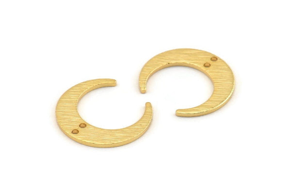 Textured Gold Plated Brass Crescent Moon Charms With 2 Holes