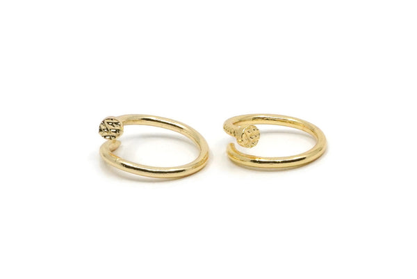 Gold Nail Ring, 2 Gold Plated Brass Adjustable Nail Rings - (15mm) D0433 Q0200
