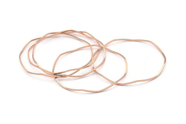 Rose Gold Plated Brass Wavy Circle Rings, Charms, Connectors