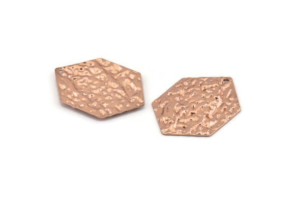 Hammered Rose Gold Plated Brass Hexagon Charms With 1 Hole