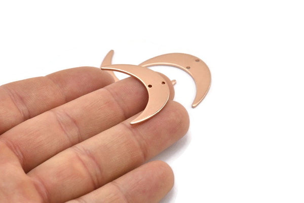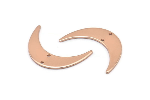 Rose Gold Plated Brass Crescent Moon Charms With 2 Holes