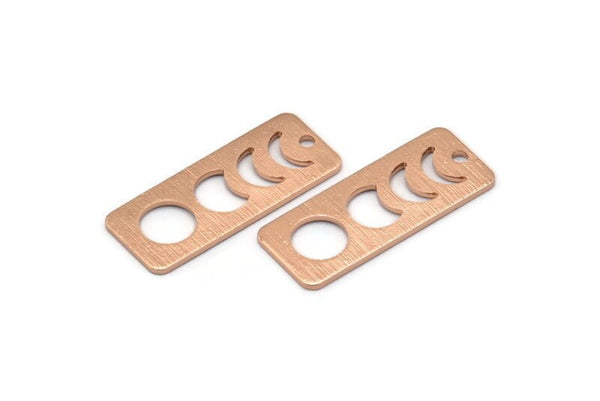 Textured Rose Gold Plated Brass Moon Phases Charms With 1 Hole