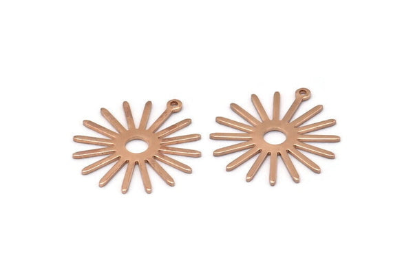 Rose Gold Plated Brass Sun Charms With 1 Loop