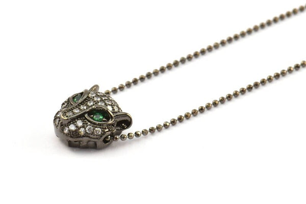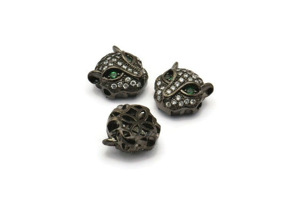 Black Leopard Pendant, 1 Gunmetal Leopard Head Beads, CZ Micro Pave Bead 11mm L02 B-3