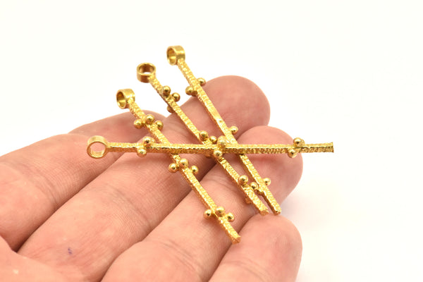 Brass Twisted Bar Pendant, 6 Raw Brass Textured Twisted Pendant with 1 Loop