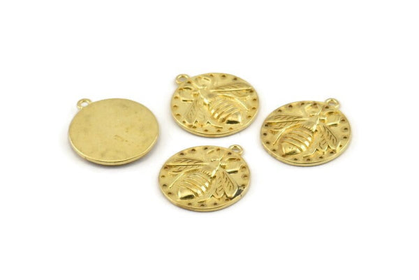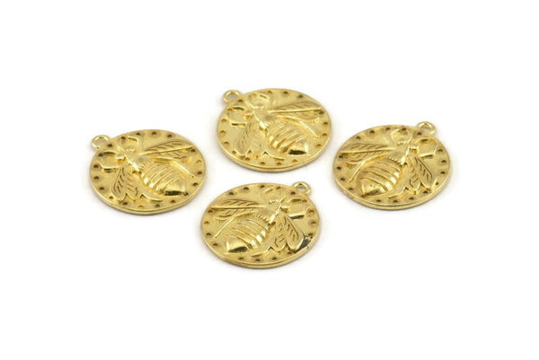 Brass Bee Charm, 2 Raw Brass Bee Charms With 1 Loop, Pendants, Findings (19x17x2mm) N1195