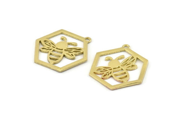 Brass Bee Charm, Raw Brass Bee Charms With 1 Loop, Pendants, Findings (30x28x1.5mm) N1379