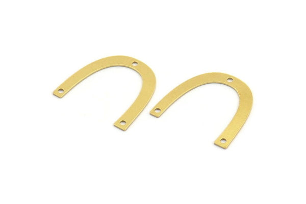 Brass Charm, 12 Raw Brass, Brass Pendants, Charm Pendants, U Shaped Charms, Brass Semi Circle Charms With 3 Holes (23x3.5x0.60mm) A4388