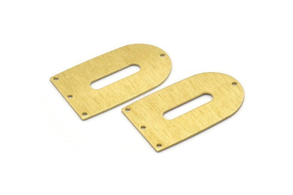 Brass D Shape, 4 Textured Raw Brass D Shape Charms With 4 Holes, Pendants, Earring Findings (35x20x0.80mm) M03154